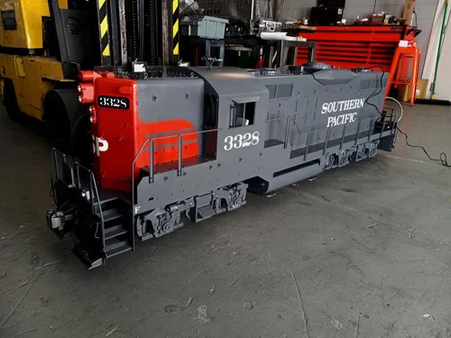 Our newest train for the lineup. A GP-35. Shown here in 1.5" scale but also available in 1". Fully loaded with sound, marker lights and lighted number boards. An all steel engine with tons of details and (4) 450watt 24v motors for tons of pulling power...